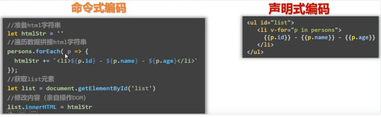 - 声明式编码,让编码人员无需直接操作DOM,提高开发效率