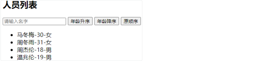 - 如果不存在对数据的逆序添加、逆序删除等破坏顺序操作,仅用于渲染列表用于展示,使用index作为key是没有问题的。运行结果图如下: