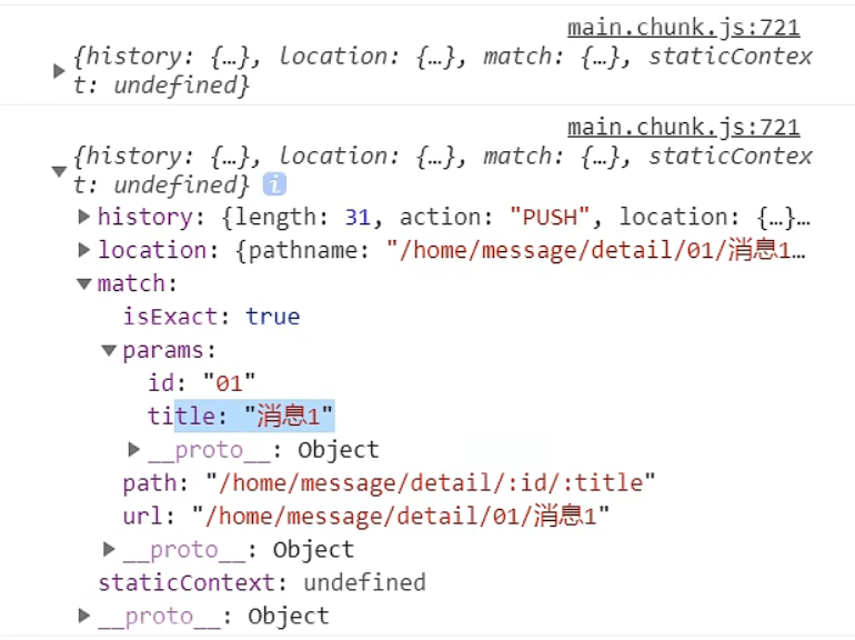 <Route path="/home/message/datail/:id/:title" component={Datail}></Route>