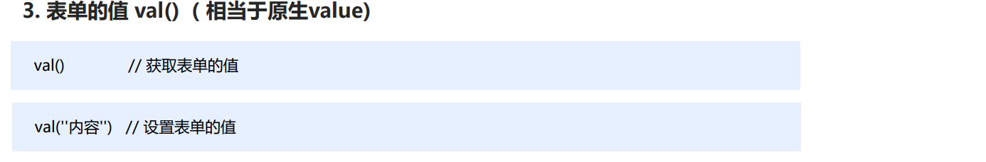 ③ 修改表单的值是val() 方法