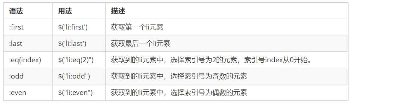 1.4 jQuery 筛选选择器